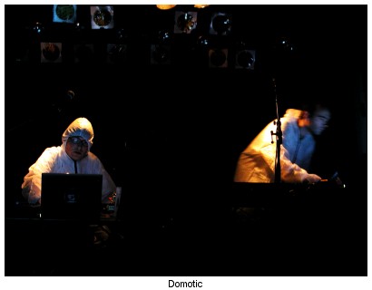 Petite surprise dans le déroulement de la soirée puisque c’est Domotic qui prend le relais, ce soir en duo, tout deux habillés de combinaisons blanches, avec un petit écran sur la gauche pour les projections. Mis à part le premier morceau, une version live de leur dernier maxi Smiles Again, pas de grosses surprises. Comme on s’y attendait, ce fut un concert très carré, avec des morceaux que l’on a l’impression de connaître par coeur et dont on s’est lassé avec le temps. On attendra donc de nouvelles productions de Domotic avant de les revoir en concert.