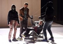 Sauvons néanmoins, comme à chaque fois chez Rodrigo García, quelques moments de réelle beauté plastique : la première scène dans laquelle les comédiens sont reliés par des fils sur lesquels sont accrochés des grelots (métaphore de la nécessaire solidarité entre eux, symbolisation de la civilisation du « tous connectés »), le survol du plateau par un drone parés de LEDs de couleur et d’un carillon, et, enfin, le début du duel que se livrent deux acteurs sur un savon de Marseille géant (belle chorégraphie de leurs corps glissants).