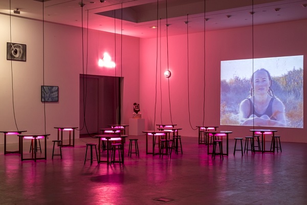 Un peu phagocytées par ces deux installations, les autres œuvres peinent à exister dans l’espace, hormis probablement Ludivine d’Ange Leccia, vidéo d’une jeune fille filmée en plan fixe, la lumière autour d’elle se faisant de plus en plus intense tandis que California Dreamin’ tourne en boucle. Afin de s’isoler convenablement, un casque est proposé au visiteur, pour entendre la chanson de The Mamas & The Papas sans être perturbé par les autres sons.