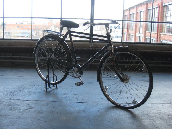 Autre témoignage de ce désir de s’attacher aux déplacements, Scoring The Black Hole (qui occupe la grande salle, dont les portes avaient été fermés pour rendre hermétiques les espaces) se constitue d’une toile noire sur laquelle des patineuses à roulettes ont tracé, avec la craie enduisant leurs patins, des cercles concentriques blancs alors que, pour accompagner la contemplation de ces anneaux, une boucle sonore est diffusée. Enfin, un vélo préparé (certains rayons ont été remplacés par des cordes de guitare) trône dans une salle, après avoir parcouru plusieurs villes (Bombay, Le Cap et, bien sûr, New-York) pour une performance sonore qui prenait assurément des atours de procession, voire de manifestation.
