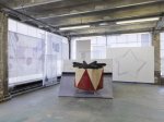Pour renforcer ce sentiment, deux constructions sont placées dans la grande salle : l’une représentant un Petit Cirque et faite de structures en lamelles, réalisées à l’aide de photos, et l’autre s’apparentant à une cabane, formée à partir d’une bâche ayant servi de signalétique à une exposition de l’artiste à Lisbonne en 2014. Si la première est ajourée et la seconde fermée, l’impression de rejouer un geste d’enfance se fait jour dans les deux cas. Ce geste se trouve également relayé par le caractère un peu naïf et simple des peintures ou huiles sur toiles accrochées aux murs de cette même salle, tandis qu’un nuage en acier peint nous permet tout de même d’imaginer un morceau de ciel.