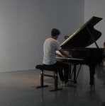 Précisément, lorsqu’on avait appris qu’il opérerait tout seul, on craignait un peu de ne pas retrouver les subtiles combinaisons (avec des apports électroniques ou bien avec d’autres instruments) qui font la réussite de Far Islands And Near Places. Mais, en fait, Sirjacq mit suffisamment de variété dans son jeu pour réussir à captiver son auditoire même dans cette configuration-ci. De fait, les premiers morceaux, principalement extraits des albums La Chambre claire et Piano Memories virent le jeune homme agir dans une tradition très classique : arpèges à la main gauche, notes plus détachées et aigues à la main droite avec parfois cette dernière qui vint croiser l’autre pour aller chercher la mélodie dans les graves.
