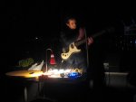 La table de Grand 8 enlevée, Jules-Valentin se posta au pied de la scène, muni d’une guitare électrique et de plusieurs pédales d’effets disposée sur une table. Utilisant celles-ci pour générer des crépitations enveloppantes, l’étudiant en architecture sut assurément construire un bel édifice, parcouru de nappes issues de sa guitare jouée à l’archet (mais un archet inhabituellement positionné très haut sur le manche de son instrument). Cette belle ambient fut un peu perturbée par un souffle assez fort émanant des amplis, lequel était même proche de recouvrir celui délibérément mis en place par le Français, grâce à ses effets. Pour autant, même dans un registre où le jeune homme pourrait à l’évidence gagner en diversité, ce (court) concert s’avéra diablement prometteur et déjà concluant dans son alliage entre textures vibrantes ou granuleuses et colorations mélodiques.