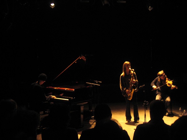 Les yeux mi-clos et l’air inspiré, Mette Henriette travaillait à la fois les pleins et les creux, la musique produite mais aussi les silences créés, faisant le choix de ne pas forcément saturer l’espace sonore. Au milieu de leur set, les trois musiciens prirent un virage plus expérimental : les notes graves roulèrent au piano, les cordes de celui-ci furent pincées, le violon et le saxophone partirent dans des envolées free. Passé cet intermède, retour à des variations plus spatiales par la suite, pour atteindre le dernier morceau, simple duo piano-saxophone où le premier répéta les mêmes notes dans les aigus tandis que le second improvisait largement.
