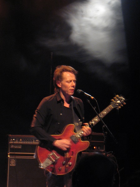 Après cette belle découverte, ce fut au tour de Stian Westerhus d’occuper la scène. Dans la lignée de son dernier morceau vu l’an passé à Présences Électronique, en conclusion de son concert donné en duo avec Sidsel Endresen, le Norvégien maltraita sa guitare, déversant une averse d’électricité, dos au public et face à ses quatre gros amplis. Ayant ainsi mis en place son propos, il se retourna ensuite pour une ballade chantée et jouée en arpèges, avant de réintroduire distorsions, saturations et effets lancés à la tablette ou de ses trois racks de pédales. Ce schéma fut répété trois ou quatre fois, utilisant un archet pour renouveler son jeu mais revenant systématiquement à un grattage frénétique de sa six-cordes, dans des hostilités qui firent partir plusieurs personnes alors que des lumières rougeoyantes tombaient telles des flammes sur le musicien.