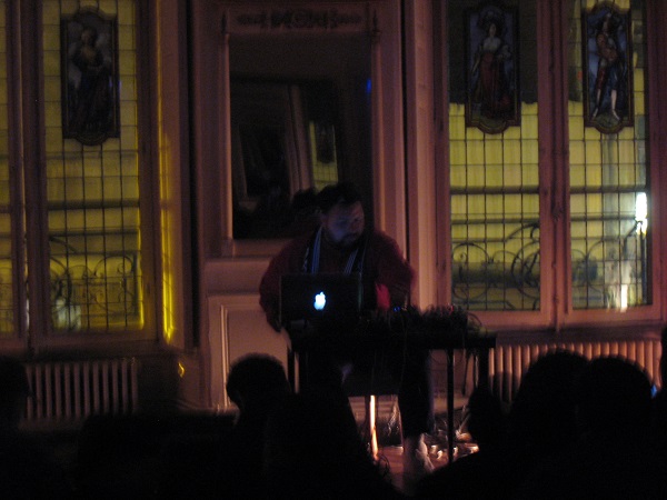 Assis derrière son laptop et ses machines, Low Jack prit le relais après une pause. Débutée par des samples urbains, sa prestation se concentra ensuite sur un dialogue saisi, découpé et ré-échantillonné (apparemment l’interview d’une personnalité féminine). L’échange entre les deux personnes était entrecoupé de plusieurs plages musicales assez sombres, marqués par des éléments plutôt lourds et appuyés voire patauds. Comme s’il fallait absolument habiller son électro, Philippe Hallais faisait revenir très souvent ses samples parlés, sans parvenir à produire quelque chose qui suscite véritablement notre adhésion.