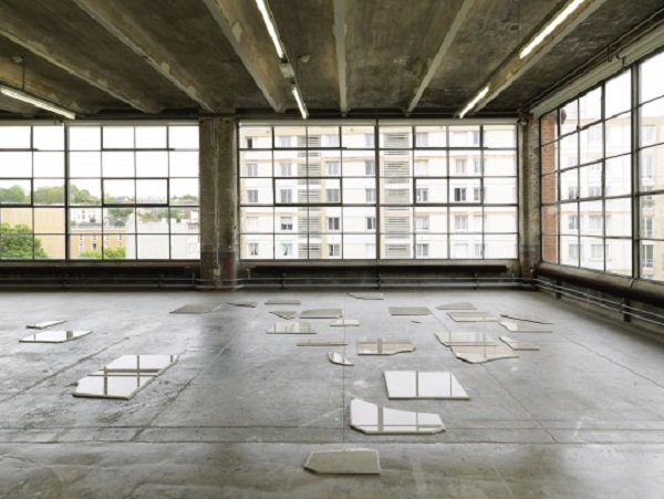La résine végétale, qui recouvrait déjà les bûches verticales installées par l’artiste en 2014, est maintenant disposée sur une étagère basse, prête à s’étendre sur la surface du sol de la grande salle du Crédac (Gum Shelf). À l’inverse, les flaques d’eau semblent rester concentrées sur les morceaux de pierre puisqu’un vernis hydrophobique, appliqué en périphérie, empêche le liquide de s’échapper (Days Of Inertia). Mais, comme pour le reste de l’exposition, la nature finit par reprendre le dessus : placées dans le coin de la grande salle, bénéficiant des immenses baies vitrées du centre d’art, les roches verront irrémédiablement l’eau s’évaporer par l’action du soleil. Rien n’y fait, donc : l’homme sera toujours moins fort que la nature !