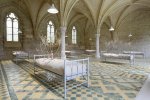 La clarté se fait alors d’autant plus forte quand on passe dans la salle du chapitre, baignée de lumière et agrémentée de six lits de dortoirs, ascétiques meubles en acier dotés d’un simple matelas au sein duquel semble avoir poussé un arbrisseau. Il s’agit, en réalité, de gattiliers, plantes anaphrodisiaques anciennement cultivées par les moines précisément pour ces vertus, chargées de les faire résister à la tentation. Avec son intitulé ironique, Insomnies retrace également la marque du temps puisque les matelas ont perdu leurs occupants, mais que les graines de gattiliers qui pouvaient les garnir ont fini, eux, par prospérer donnant même des jeunes pousses… à la différence des religieux.