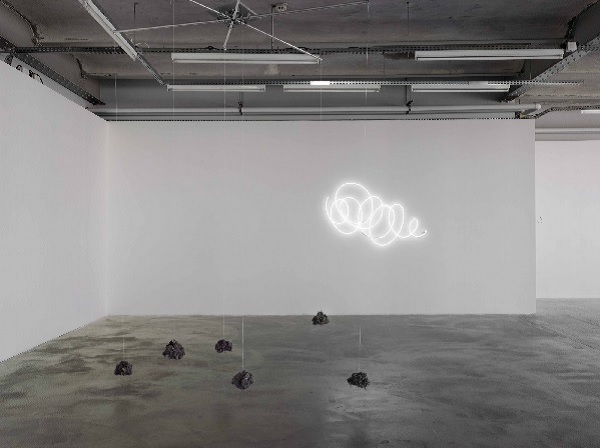 L’attrait d’Hugues Reip pour la nature nous était connu, il se trouve ici confirmé par une propension à solliciter des matières première d’ordinaire peu usitées dans le champ de l’art : terre, donc, mais aussi poussière pour en faire des installations ou mécanismes plus structurés, à l’image de ces amas de poussières suspendus à un mobile tournant et sur lesquels viennent butiner des papillons (Black Sheeps). Dans cet environnement, l’être humain est le grand absent d’une exposition peuplée de végétaux, de roches et d’animaux qui, en toute hypothèse, préexistaient à notre espèce et lui survivront.