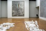 Avec la volonté de travailler autour du récit, et de la mémoire au-delà du témoignage et du document, le rapprochement des quatre artistes pouvait pourtant nous séduire et générer quelque chose de pertinent. Or, Marie Voignier se disqualifie déjà un peu, en présentant un film de 82 minutes, difficile à appréhender dans un contexte muséal quand bien même le souhait de suivre un cryptozoologue dans une forêt camerounaise peut paraître intéressant. Premières œuvres avec lesquelles le visiteur entre en contact, celles de Thu-Van Tran se répartissent entre sortes de gravois au sol (résidus d’une enseigne) et grandes peintures au mur, marquées par des traînées grisâtres et quelques percées arc-en-ciel, renvoyant aux épandages toxiques de l’armée états-unienne au Vietnam pendant la guerre. Esthétiquement assez réussi, l’ensemble fait cependant appel à des ressorts et une couleur générale déjà très vus.