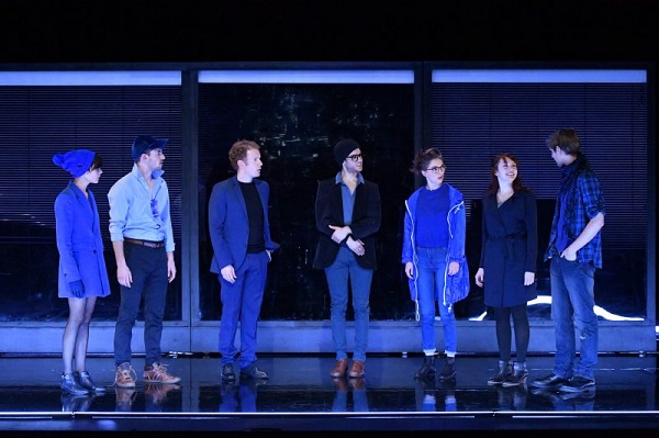 Réunion de deux collectifs (l’un à l’écriture, l’autre à la création scénique et au jeu), Pavillon Noir se veut une plongée dans le deep web (ou dark web ou freedom net, selon l’angle qu’on adopte). Alors qu’on aurait pu imaginer que les troupes aient massivement recours, pour cette vue en coupe centrée sur trois histoires principales, aux nouvelles technologies (vidéos, projections, écrans multiples), les jeunes gens ont clairement opté pour des moyens plus traditionnels. C’est ainsi que sont seulement utilisés des néons, de la musique, des projecteurs, de la fumée et trois cloisons mobiles, adjuvants grâce auxquels on passe de la Syrie underground à un appartement de zadistes rennais ou à un procès de hacker à New-York.