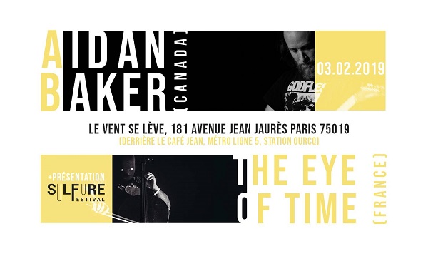 Préfiguration du festival qui se déroulera courant mars et dont la programmation est des plus intéressantes pour qui suit ces pages (Alexandre Navarro, Christ., Giulio Aldinucci, Thisquietarmy, Frédéric D. Oberland ou Mathias Delplanque), cette soirée dominicale curatée par les équipes de Sulfure accueillait deux musiciens déjà recensés ici. De fait, nos confrères et amis des webzines Indie Rock Mag et Des Cendres à la Cave, organisateurs de cette prochaine manifestation, voulaient la lancer avec un concert préfiguratif et profiter aussi de la venue à Paris d’Aidan Baker, pour une prestation de Nadja deux jours plus tard aux Instants Chavirés. Une cinquantaine de personnes étaient donc réunies pour deux sets instrumentaux, tenus au Vent Se Lève, lieu d’art et de culture juste à côté de La Villette, agrémenté de mobilier vintage (bancs et tables basses en palettes de bois, ampoules à filaments en tungstène…).