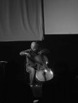Toutefois, une fois n’est pas coutume, on regretta un léger déficit volumétrique qui rendit trop centré le son d’ensemble des compositions d’Aidan Baker, ou peut-être était-ce le froid ambiant du Vent Se Lève qui générait cette impression de resserrement sur soi ? On retrouva davantage de coffre dans le dernier passage des quarante-cinq minutes de concert, où la guitare électrique fut un peu délaissée au profit d’un travail sur les effets, avec jeu savant sur les potentiomètres des pédales posées sur la table.