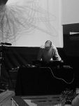 Au surplus, il était agréable de voir un musicien électronique, dépourvu d’instrument et concentré sur ses machines, véritablement jouer en concert : travail visible sur ses potentiomètres, lancement de boucles, interruption de rythmiques, savant dosage des réglages, bascule de tranches, pressage simultané des boutons « mute », etc… Nonobstant une petite baisse de régime dans le dernier tiers de sa prestation (à cause de passages arythmiques moins prenants), on tenait assurément là le premier très bon concert du festival.
