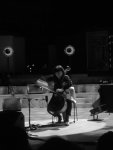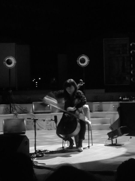 Familière des scènes de musique improvisée, chroniquée sur ces pages pour un concert avec Jacques Demierre aux Instants Chavirés en 2013, Okkyung Lee était armée de son traditionnel violoncelle pour la présentation d’une pièce de vingt minutes résultant d’une commande du GRM. Mélange de sons préenregistrés, diffusés depuis la console par un technicien, et de notes issues de son instrument, ce morceau justifia la présence de la Coréenne à cette manifestation. Jouant de son violoncelle principalement par slides, très souvent dans les aigus, tout proche du chevalet, celle-ci agitait frénétiquement son archet pour produire sons et interventions atonales. Entre frottements sur les cordes étouffées et sons quasi-stridents, Okkyung Lee répondait impeccablement aux apports purement électroniques, tant et si bien qu’on éprouvait parfois des difficultés à identifier réellement leur provenance, sans que cette indétermination ne fût, en vérité, gênante ou désagréable.