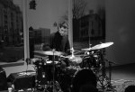 Installé derrière sa batterie, Eli Keszler débuta peu après 20h30 pour un set en solo, au sein duquel il changea sans cesse de matériel. De fait, l’utilisation de baguettes offrit un jeu un peu heurté et quasi-démonstratif (impressionnante rapidité d’exécution, tournoiement des baguettes d’un côté à l’autre), celle des mailloches permit un travail plus feutré et celle des balais une approche plus caressante. Au-delà de ses composantes traditionnelles, la batterie de l’États-Unien était agrémentée de morceaux de feutrine placés sur la caisse claire et un petit tom ; de petites cymbalettes étaient posées sur ces morceaux de tissu, des petites cloches étaient accrochées sur d’autres toms et la seconde caisse claire était dotée d’un appareillage électronique.