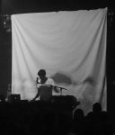 Par coïncidence, Mondkopf se trouvait programmé le même soir que Tim Hecker, soit un schéma identique à celui relaté sur ces pages lors du Bozar Electronic Arts Festival 2014. Depuis, l’un et l’autre ont fait du chemin et, pour le Canadien, après un crochet sur 4AD, son retour sur Kranky a été l’occasion de se faire accompagner par des musiciens japonais d’un ensemble Gagaku, composé d’instruments ancestraux. Un premier album avait paru, dans cette disposition en septembre dernier, et un nouveau vient d’être publié, sur lequel nous reviendrons prochainement. Lors de notre recension de Konoyo, nous indiquions attendre une traduction live pour se faire une réelle opinion de cette collaboration, les uns et les autres ayant un peu de mal à trouver leurs marques sur disque. Celle-ci venue, nous ne fûmes pas vraiment séduits, principalement à cause d’un agencement scénique et musical qui rendit monotone l’ensemble.