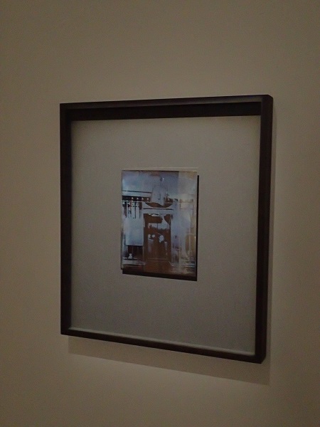 Allant récupérer ces outils et réactiver ces techniques, Simon Starling les superpose pour faire naître, de ces rencontres et dialogues, des créations mettant en lumière ces procédés : F As In Foglia lui permet de recouvrir une sérigraphie de morceaux de feuilles d’or, Recursive Plates (After Eugene Atget) le voit prendre en photographie un cliché sur plaque d’argent d’Atget et Talking, Computing l’amène à réaliser en tapisserie une reproduction d’une pellicule 35mm. Á chaque fois, un effet de mise en abyme s’installe, mettant en majesté une méthode un peu obsolète ou jouant sur les effets plastiques que provoquent cette superposition et leur inscription dans l’espace d’exposition. La très grande tapisserie vient ainsi guider le visiteur et la plaque d’argent lui permet de se voir en partie (ou de voir les autres œuvres, si on se met de biais), de la même manière qu’on aperçoit le reflet d’Atget dans le cliché original.