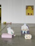 Louable car, en conviant 29 artistes dans les trois espaces du centre d’art d’Ivry-sur-Seine, l’approche de Sarah Tritz permet de tisser des liens et des concordances entre les œuvres personnelles qu’elle dispose dans les lieux et celles des plasticiens qu’elle invite. Sans citer l’ensemble des créateurs présents, on relèvera qu’au-delà des formes présentées (sculptures anthropomorphes, travail au papier mâché ou de collage, dessin au graphite), ce sont surtout les thématiques abordées qui dialoguent. Principalement axées autour de la féminité, de la chair parfois chimérique et de ce que ce corps peut charrier comme sensualité ou interrogation, de nombreuses œuvres semblent ainsi résonner avec les débats tenus depuis deux ans : bronze de « princesse » au corps affaissé mais aux attributs sexuels rehaussés de rose de Liz Craft, gouache de Dorothy Iannone dédiée au personnage de Lolita, buste nu peint par Nicole Eisenman, moulage d’un sexe féminin par Alexandra Bircken, sculpture d’une tête de femme par Valérie Blass, etc…