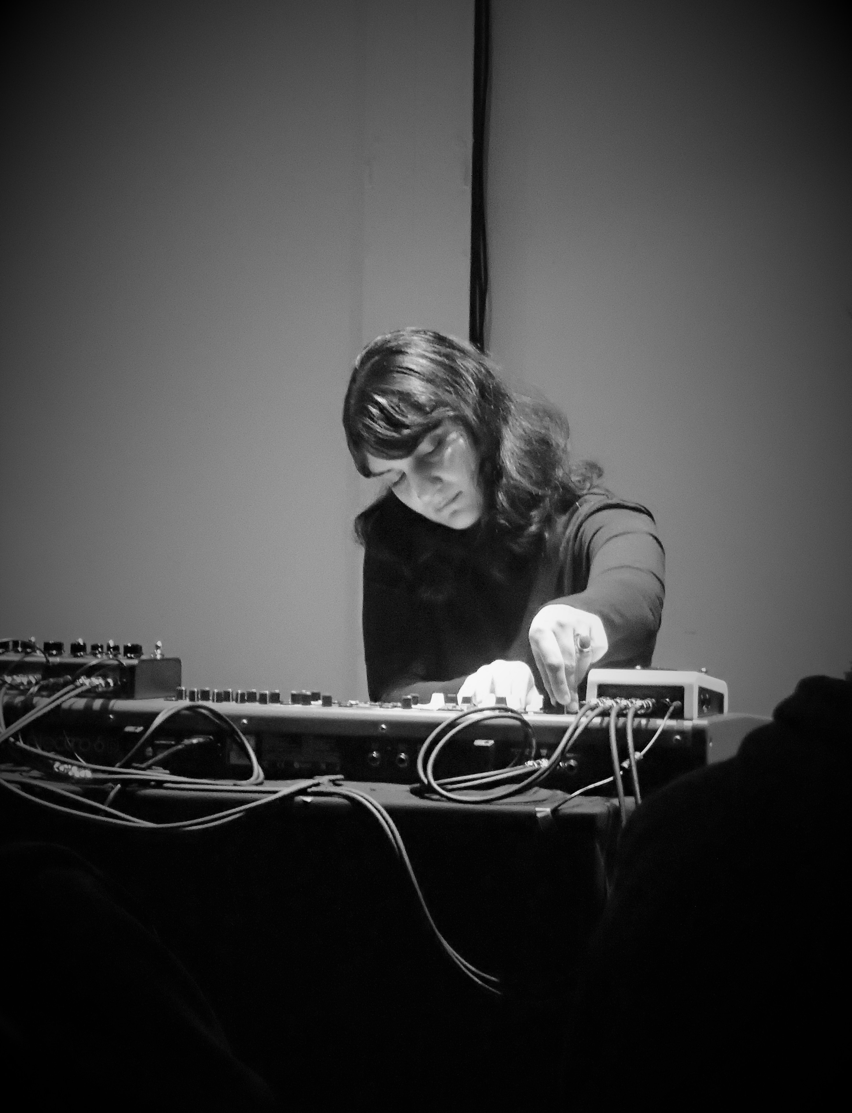 Place ensuite à Sarah Davachi, pour une prestation dans la lignée de celle vue à Présences Électronique en mars dernier, soit des plages ondoyantes, flirtant avec le larsen mais aussi avec une certaine luminosité. Poussant délicatement les tranches de sa petite table de mixage, tournant doucement ses potentiomètres, la Canadienne livra un set ambient dans lequel les nappes frottaient parfois l’une contre l’autre, non loin d’une certaine disharmonie. Capable d’introduire quelques éléments un peu plus mélodiques (une note tenue ici, un accord là, des notes éparses de guitare plus loin), la musicienne privilégiait, néanmoins, une ambient très homogène, faite de micro-variations et avançant plutôt d’un seul bloc.
