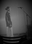 Ce dispositif permit assurément de pallier l’absence d’instruments sur scène, mais pas de se situer à la limite de la pose, surtout quand Soho Rezanejad en rajoutait dans son rôle de diva froide (et que je reste impavide, et que je me passe lentement la main dans mes cheveux, et que je mets la main sur la poitrine avec un air pénétré, et que je tends les bras vers l’avant de manière implorante, etc…). Pour terminer, la jeune femme offrit un peu plus de chaleur et moins de morgue, quand une guitare acoustique entra et qu’elle se saisit d’un micro pour aller s’asseoir sur une chaise au milieu de la scène, puis au sein du public pour chanter vraiment. Ainsi se terminèrent ces trois-quarts d’heure davantage proche de la performance que d’un véritable concert.