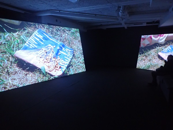 Exposer des vidéos n’est jamais chose aisée : soit leur durée est trop brève et cela empêche d’appréhender véritablement le travail de l’artiste, soit leur durée est trop longue et on s’interroge sur la pertinence du centre d’art comme lieu de présentation (une salle de cinéma ne serait-elle pas plus idoine ?), soit, encore, les conditions de monstration ne sont pas toujours optimisées (absence de sièges, parasitage par d’autres œuvres voisines ou inversement parasitage d’autres œuvres, etc…). Pour l’exposition de Ben Russell, quasi-intégralement composée de films, le Plateau opte pour un dispositif très immersif qui sied plutôt bien au propos de l’Étatsunien.