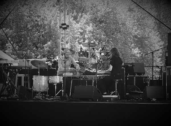 Officiant au chant, au Casio, synthé, voire à la flûte traversière, Béatrice Morel Journel se produisait en français, avec des paroles pas forcément intelligibles, mais qui n’occupaient pas trop de place, laissant plutôt les instruments occuper l’espace sonore. Le travail sur la durée du duo servit, par ailleurs, plutôt le projet, venant amplifier les volontés des Français d’emporter les auditeurs. Intégrant quelques rythmiques (programmées ou jouées par Josselin Varengo sur une batterie sommaire, constituée d’un tom, d’une caisse claire et d’une cymbale), l’ensemble prit alors davantage de corps, offrant des compositions tout à fait adaptées à ce début d’après-midi ensoleillé.