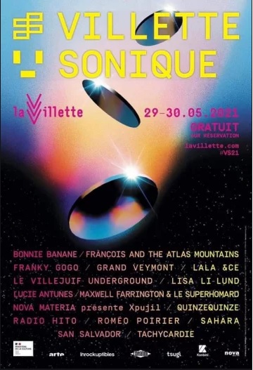 Être l’un des premiers festivals à reprendre après plus de six mois d’arrêt permet de donner le ton de ce qui sera possiblement la manière dont vont se dérouler plusieurs manifestations à venir. C’est ainsi que Villette Sonique se passa intégralement en extérieur, avec des cercles tracés par terre (ou des transats suivant la nature du sol), des spectateurs assis et à distance les uns des autres, des règles sanitaires régulièrement rappelées, des horaires diurnes (afin de respecter le couvre-feu) et une programmation très majoritairement française. Après une édition 2020 annulée (alors qu’elle promettait plutôt, notamment une soirée curatée par Stephen O’Malley avec Robert Aiki Aubrey Lowe et Kristin Anna, ou bien la présence de figures comme Kim Gordon et The Jesus & Mary Chain), ce sont seize concerts qui furent programmés cette année, sur deux jours et deux scènes, pour un festival dont les fondamentaux demeurèrent. La gratuité de l’accès au site drainait ainsi un public pas forcément connaisseur des propositions présentées, mais dans une convivialité et une bonne ambiance certaines (on propose volontiers une poignée de chips à son voisin de cercle), l’ensemble étant baigné d’un franc soleil.