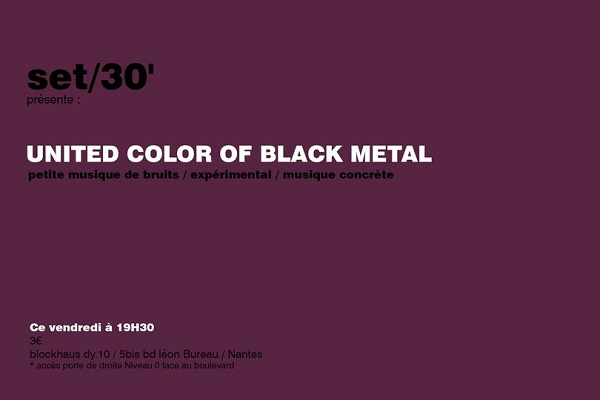 Avec leur nom en forme de blague potache, les deux Français d’United Color Of Black Metal ne donnent que peu d’indication sur leur registre musical. Quand on pénétra dans un Blockhaus DY10 bien rempli (malgré le fait d’être en fin de période de congés scolaires), on reconnut pourtant Jean-Baptiste Geoffroy, vu sous le nom de Tachycardie à Villette Sonique il y a six mois. En face de lui, de l’autre côté de la table sur laquelle trônaient leurs tables de mixage et pédales d’effets, Guillaume Brot se tenait également debout, prêt à livrer la demi-heure réglementairement prévue par le format de ces soirées (et ici respecté à la seconde près).