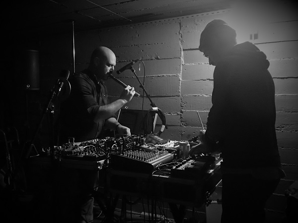 L’ensemble était alors assez captivant, visuellement intéressant et musicalement expérimental avec, toutefois, une véritable capacité à transformer des éléments abstraits en composantes harmonieuses, articulées de manière convaincante. À son tour, Geoffroy put utiliser des petits objets, dans les dernières minutes du set, et notamment une boîte contenant une bobine et deux fils tendus, qu’il frottait en faisant tourner sa main. À la faveur de ce nouvel adjuvant, onde tournoyante mêlée à l’agrégat déjà en place, les Français proposèrent une montée en puissance plutôt marquée, et bien à même d’emplir toute la cave voûtée du Blockhaus DY10.