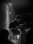 Vraiment intéressant, visuellement comme par son aspect expérimental, ce propos apparaissait, en outre, moins convenu que des intermèdes de solo de batterie plus traditionnel : joués aux baguettes, légèrement démonstratifs, et convoquant uniquement cadre de la caisse claire et peaux des fûts. Au sortir de ce concert, et en se dirigeant vers Stereolux pour la suite de la soirée, on regretta alors de ne pas en savoir davantage sur ce musicien (aucune information sur son parcours, aucun site internet, aucun lien vers une quelconque plateforme d’écoute).