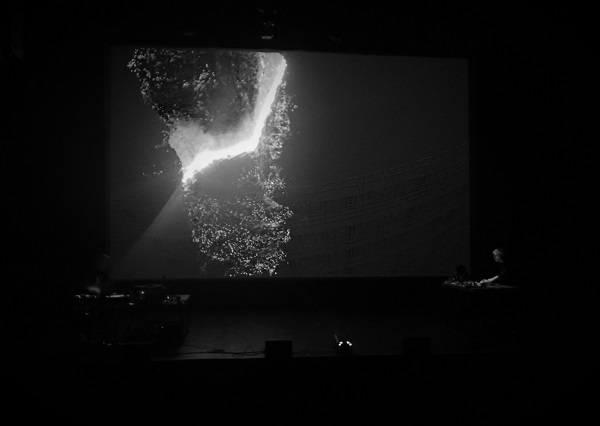 Après avoir rapidement quitté le Blockhaus DY10 et traversé le boulevard, on rejoignit Stereolux, principale salle de musiques actuelles de Nantes, située dans les Nefs, après le célèbre éléphant et les autres machines de l’île. Organisées depuis une demi-douzaine d’années, les soirées Électrons Libres se veulent ouvertes aux artistes numériques, combinant musique et visuels. Comparables à ce que la Biennale Nemo peut offrir en région parisienne, ces soirées trimestrielles ont ainsi déjà accueilli des créateurs familiers de ces pages (Robert Henke, Robin Fox, Plaid ou Franck Vigroux). Pour l’édition de fin février, la tête d’affiche était Ryoji Ikeda, venu proposer un set inspiré de son album Supercodex, publié en 2013. Auparavant, trois autres concerts étaient proposées, dans un schéma intelligent, alternant la grande salle (dite « Maxi ») et la petite (dite « Micro »), favorisant l’enchaînement et la circulation.