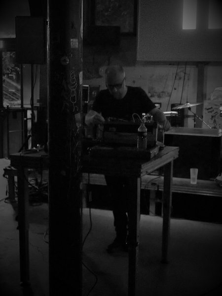Comme la veille, il fallut attendre que minuit passât pour profiter du deuxième concert du bar, et voir Aymeric de Tapol, installé au pied de l’estrade, derrière une table sur laquelle son synthé modulaire trônait. Lançant une boucle mélodique répétée, le Toulousain y adjoignit ensuite de petites rythmiques, un micro-soufflement et un léger larsen, pour constituer une structure tournoyante propre à faire remuer les têtes et hanches de la vingtaine de personnes qui assistaient véritablement au concert (en plus de celles et ceux qui profitaient simplement du bar).