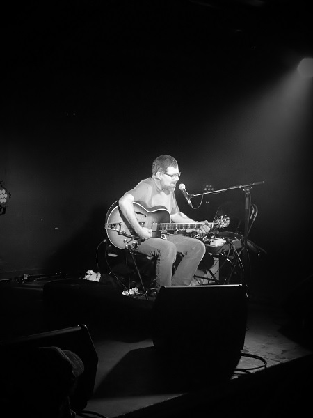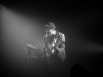 Autre musicien signé sur Constellation, Éric Chenaux est un habitué des scènes françaises, tournant régulièrement dans notre pays, avec son folk expérimental. Pour cette date, on le retrouva assis, avec sa guitare électrique, ses pédales d’effets posées sur des chaises à côté de lui et de la réverbération sur sa voix. Dans ses cinq longs morceaux, sa six-cordes s’installait progressivement, soutenant simplement le chant au début avant de se livrer à des soli tantôt folk, tantôt blues (travail au vibrato et à la pédale wah-wah), tantôt expérimental, tantôt countrysant. Ce schéma put se montrer un rien répétitif pendant la grosse demi-heure de concert du Canadien, mais fut conclu par une courte chanson en rappel, interprétée debout et a capella.