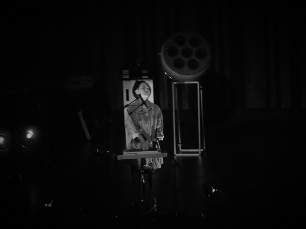 Pour ouvrir la soirée, avec un peu de retard compte tenu de l’affluence, on découvrit Diane Barbé, jeune femme adepte d’outils et instruments fabriqués main, notamment des appeaux à oiseaux, dont les sons furent mis en boucle, dotés de réverbération et poussés jusqu’au larsen. Ils furent ensuite relayés par une flûte traversière, aux sons ululants ou assez proches d’un chant d’oiseau, avec trilles et autres jeux rapides. Plus loin, apparurent un sifflet à coulisse, d’autres appeaux et une autre flûte, soutenus par des petites pointes électroniques qui, grâce au dispositif de spatialisation sonore, parurent ressembler à des bruits d’insectes nocturnes, dans une atmosphère onirique très forte. Pour finir, la Française se saisit d’une flûte traversière en bois, aux consonances est-asiatiques (ou sud-américaines, c’est au choix), conclusion de vingt minutes dépaysantes.