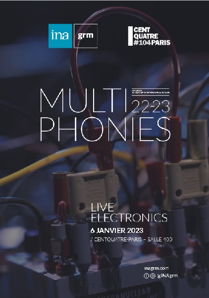 Dans la gamme des concerts programmés par le GRM de l’INA, nous ne nous étions encore jamais rendus aux propositions faites début janvier, par faute d’intérêt pour les artistes invités ou par manque de disponibilité les soirs considérés. Afin de bien débuter 2023, on prit le chemin du 104, pour cette soirée « Live Electronics », positionnée dans la salle 400, en configuration frontale (possiblement moins pertinente pour profiter de l’acousmonium du GRM, mais qui permettait à tout le public - fort nombreux, au demeurant - de bien voir les personnes qui se sont succédées sur scène).