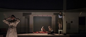 Plus loin, lorsque la pièce se pose un peu, quand elle prend le temps de s’arrêter sur un film dans la durée, on retrouve une plus grande pertinence. Deux passages retiennent ainsi l’attention : la re-création de Jeanne Dielman, 23, quai du commerce, 1080 Bruxelles et celle de la tétralogie Alien. Dans chacun des cas, les quatre comédiennes interprètent toutes Delphine Seyrig et Sigourney Weaver, tandis qu’une récitante narre l’histoire des films considérés, de manière plus ou moins condensée. Dans le premier cas, le spectateur peut, à l’instar du long-métrage de Chantal Akerman, faire l’expérience de la durée et de l’hyperréalisme et, dans le second, l’aspect grand-guignolesque des scénarios des quatre productions successives est largement mis en lumière, avec un humour certain.