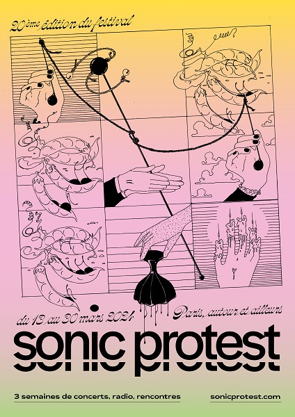 Au cœur d’un mois de festival dense et riche (avec, à nouveau, deux grands plateaux de six ou neuf concerts), trois dates de Banlieues Bleues 2024 avaient retenu notre attention. Toutes regroupées sur une semaine, ces propositions débutaient par une « carte blanche à Sonic Protest », alors que Sonic Protest venait d’annoncer la fin de ses activités, après vingt éditions d’un festival auquel on n’a participé que rarement, mais dont la programmation a toujours intrigué. On s’en souvient parfaitement : une semaine avant le premier confinement, la Dynamo était déjà remplie pour une soirée co-organisée par Banlieues Bleues et Sonic Protest. Pour cette édition, c’est sur la moitié du samedi que se tenait le plateau, débuté à 16h30 avec une performance d’étudiants, encadrés par Anna Holveck, pour une vingtaine de minutes donnée dans la salle et au cours de laquelle le public fut invité à participer.