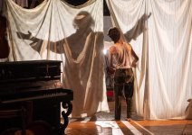 Sans véritable paroles (hormis quelques grommellements dans une langue mêlant italien et borborygmes), Sono io ? et son atmosphère italianisante (ligne qui sèche, tendu sur des fils, couleurs et matières qu’on pourrait rapprocher de l’arte povera, tribut général payé à la commedia dell’arte) livre également d’impressionnantes scènes d’acrobatie, à la sangle ou avec une contrebasse, avant de se terminer dans une très belle émotion, simplement née de l’envol d’un ballon rouge. Et ce fut alors qu’on reconnut être beaucoup plus touché que ce qu’on avait imaginé.
