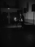 Le temps d’ôter les chaises disposées en rangs serrés dans la salle, et d’installer un tréteau et une planche avec machines et clavier, et l’Australien put livrer sa seconde petite demi-heure de concert. Placé au centre de l’espace, devant six enceintes surélevées, il put mélanger rythmiques faites de mélange entre sons mats et secs, et de tonalités aux contours plus timbrés, et éléments opérant dans un registre électroacoustique, avec glitchs et poussées sonores. La présence continue des rythmiques et le lancement au clavier-séquenceur des autres matériaux permirent d’offrir des propositions tout à fait convaincantes qui, au surplus, jouaient habilement avec le dispositif de diffusion, dans un exercice d’appariement rythmique-enceinte (à chaque enceinte sa rythmique). À la veille des trois jours de concerts prévus pour les 20 ans de Présences Électronique, on y vit même une certaine préfiguration.
