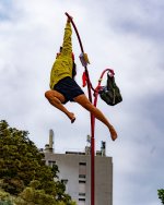 En quelques mouvements, elle se trouva tout en haut, suspendit son sac à dos, en sortit quelques accessoires et réalisa des figures autour de l’axe et de ses excroissances. D’une main, d’un genou, juste avec ses pieds ou ses abdominaux, elle tournait autour du mât et des ailes, passant de l’une à l’autre ou s’agrippant. Plus tard, elle put également livrer des mouvements de danse et déhanchés, sur un rythme électro diffusé par les enceintes.