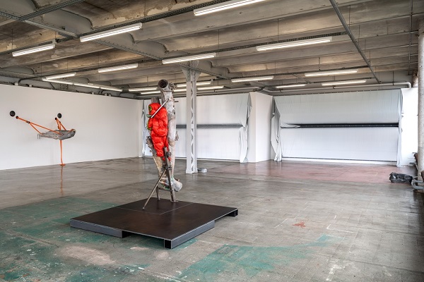 Nouvelle découverte proposée par le Crédac avec une exposition personnelle d’une plasticienne d’une quarantaine d’années, venue du Pays Basque espagnol et qui travaille à partir de moulages et de matériaux primitifs. Principalement sculptrice (seule une vidéo, diffusée en fin d’exposition, fait exception dans sa pratique ici présentée), June Crespo entend revendiquer un aspect industriel dans son travail : objets bruts, couleurs grises, présence de taches de peinture, de traces et coulures. Ses créations, comme souvent dans le lieu ivryen, entrent alors en résonance avec le bâtiment, de brique, de verre et d’acier, ancienne manufacture. Moulés et démultipliés, les sacs à main ou selles de cheval pris comme point de départ par l’Espagnole se trouvent rendus inutilisables, agrémentant l’exposition sans même, parfois, être reconnaissables.