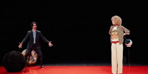 Pour servir cet échange très vif, Laure Mathis et Douglas Grauwels proposent postures outrées, éclats de voix, mouvements de bras et autres exagérations gestuelles et langagières, encouragés en cela par les réactions enthousiastes et les rires du public. En rajoutant possiblement, pris dans leur élan, les comédiens (qui ne tiennent pas forcément toujours l’accent espagnol assigné par leurs rôles) enchaînent également adresses direct et sollicitations des spectateurs. Le sentiment d’être pris à témoin d’une dispute peut alors naître, de même que celui d’assister à une séance de psychanalyse des personnages, notamment quand le héros est au téléphone avec son père. Entre gêne et envie que cela ne s’éternise pas, on en est venu à trouver certains passages gratuits, s’étirant plus que de raison, ou s’égarant dans une poétique un peu vaine (à l’image de la chorégraphie finale).