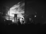 Servi par une grosse dose de fumée et de superbes lumières (laser rouges ou verts émanant de sept cercles situés sur le mur de fond de scène, ou bien deux pans verticaux blancs qui compartimentèrent presque la salle), Lol K livra des morceaux qu’on aurait parfois aimé être arrêtés moins tôt, et qui se montrèrent beaucoup moins singuliers en l’absence d’électronique (tel ce titre avec chant contre arpèges de guitare). Rejoints par feeo pour le dernier titre, les Londoniens y gagnèrent la clarté et luminosité de son timbre, pour sortir avec une couleur un peu autre de cette petite quarantaine de minutes.